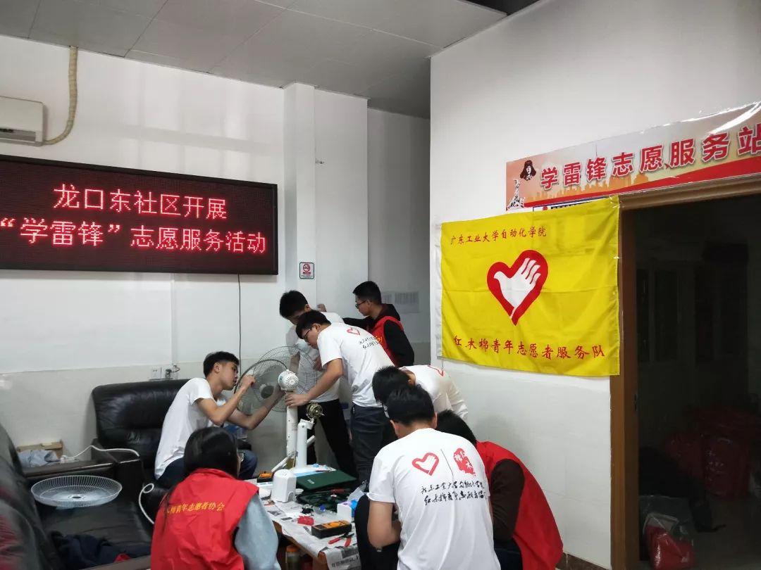 原来这些小伙子来自广东工业大学自动化学院红木棉志愿者服务队,他们利用自己的专业知识,对社区内的24台有问题的家用电器进行了检测和维修,受到了街坊们的热烈欢迎。