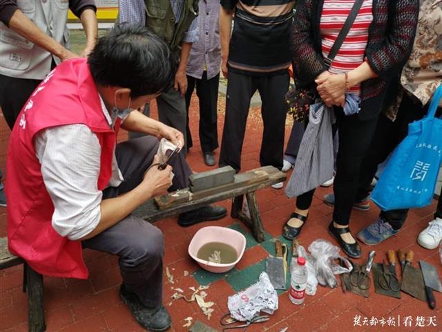 得知了社区书记容玉芳的想法,111社区书法达人李兴启、搞家电维修的陆祥、擅长修鞋修伞的汪兰和配钥匙的罗亚平,一口应允,容玉芳又找来了擅长磨刀和理发的师傅。