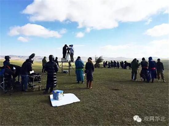风情鼓荡的电视剧在蔚蓝的牧场铺展写真的画面。导演巴音指挥着摄像、录音、灯光、美工、化妆专注到位,上戏演员形神并茂地进入角色。这是男女主人公与旗里来草原投资的商家,关于开发草原的一场情节戏。戏中有矛盾冲突,有情绪对接,有蒙古语流畅中的激昂,有色彩和谐的深远背景。这闪示在草原怀抱的影视艺术创作,自然地像生活的平凡常态。那表情、那语态、那步履、那幽默,涌自草原,还原草原,回响草原!