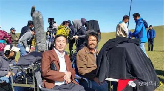 (作者刘少华与著名导演巴音(右)在拍摄现场。)
