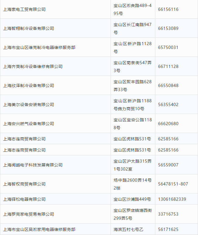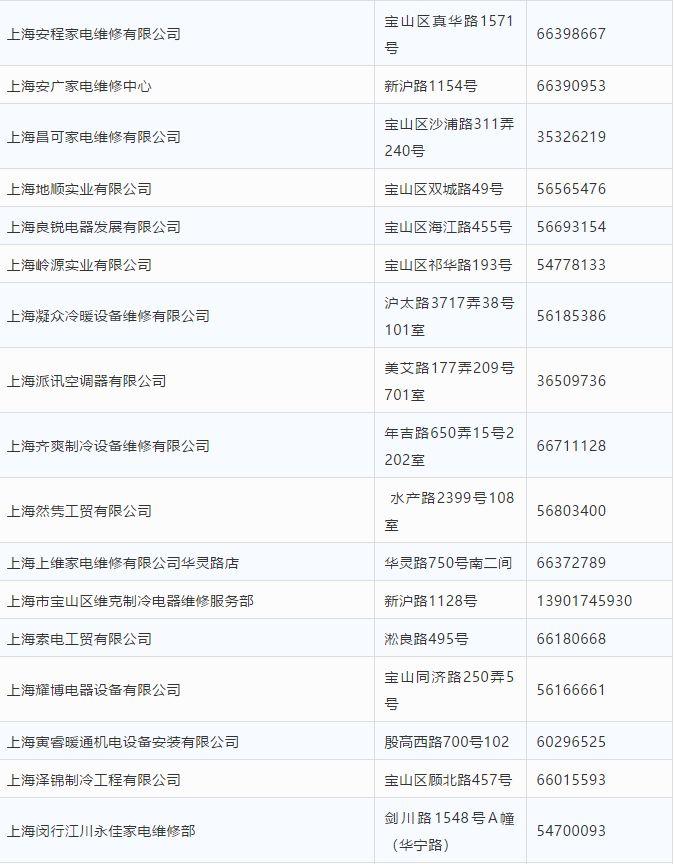 正规!宝山50个家电维修点位+162个品牌家电维修电话!请收藏