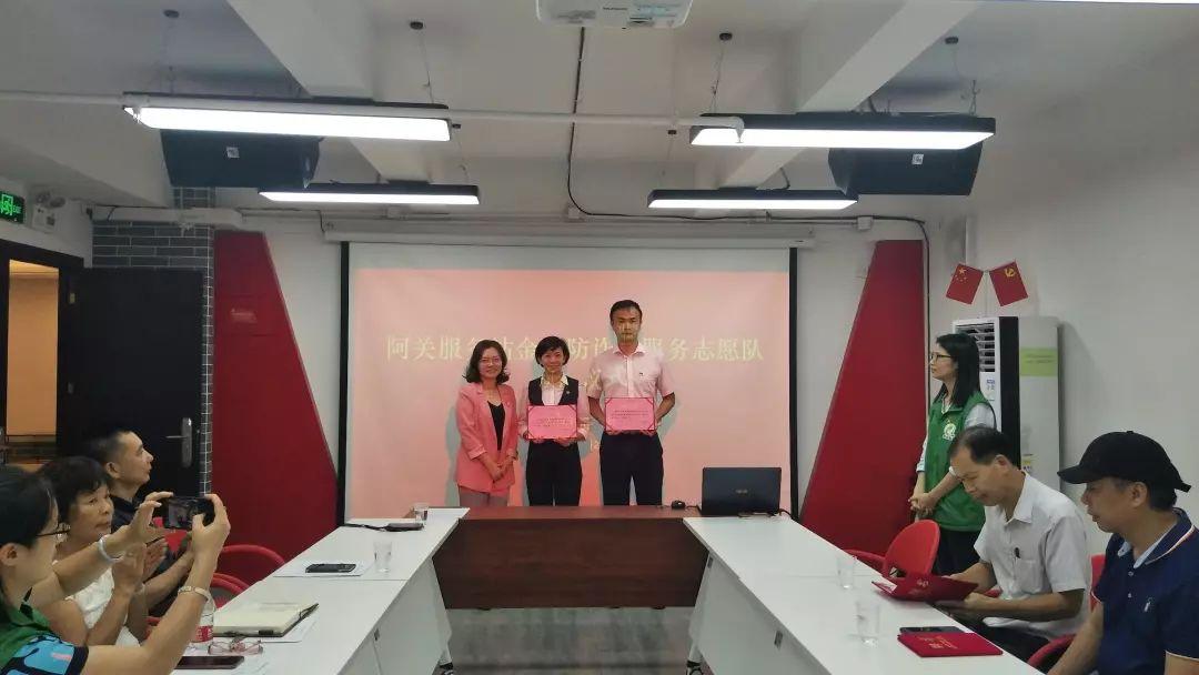阿关服务站金融防诈骗服务志愿队的成员是来自中国银行万寿北支行、怡乐路支行的志愿者,他们将充分发挥自身特长,积极参与街道金融防诈骗宣传工作,定期组织银行工作人员进社区宣传金融防诈骗知识,守护居民尤其是长者的“钱袋子”。