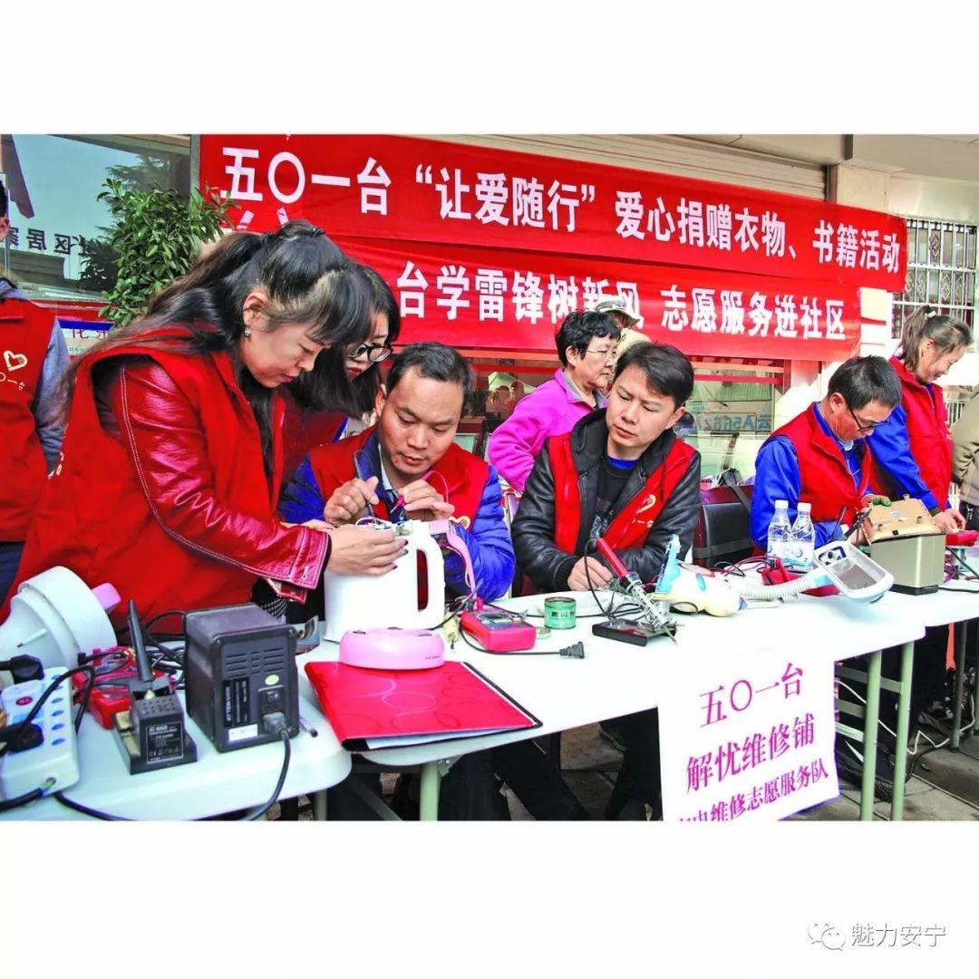 志愿服务是助力安宁创建全国文明城市的重要力量。近年来,五〇一台坚持以党建带团建,以品牌活动为载体,着力打造“解忧维修铺”志愿服务品牌,成为了我市群众性精神文明建设的一抹亮色。五〇一台志愿服务队也因此荣获了2018年安宁团市委“最佳志愿服务队”,并成功入围全国“学雷锋”志愿者服务“四个100”先进典型“最佳志愿者服务组织”候选名单。