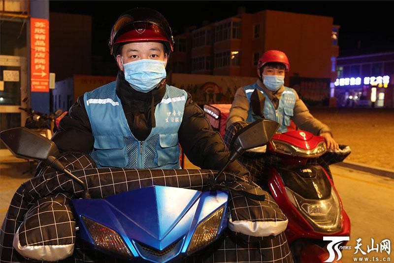 3月7日,吕宇攀(左)和木拉德力·亚合甫准备出发服务居民。