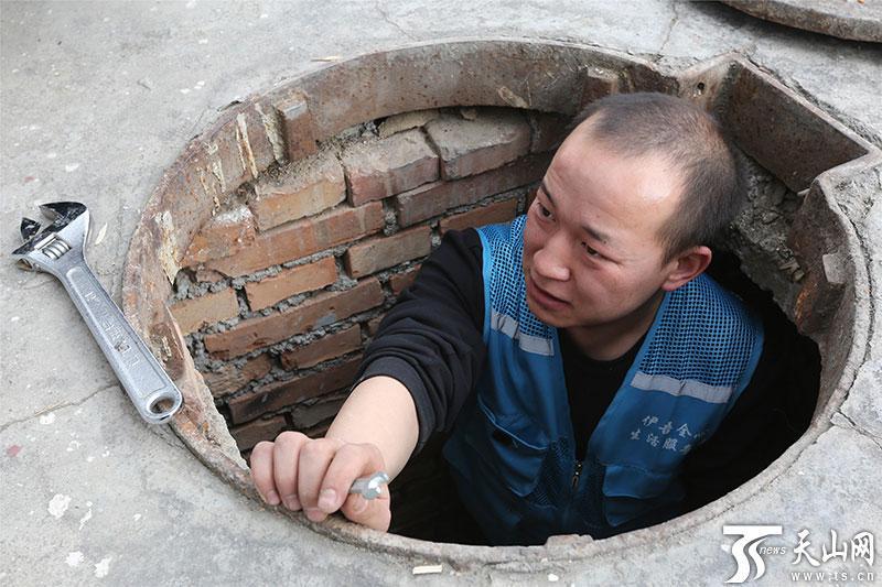 3月7日,吕宇攀在小区为居民疏通自来水井管道。