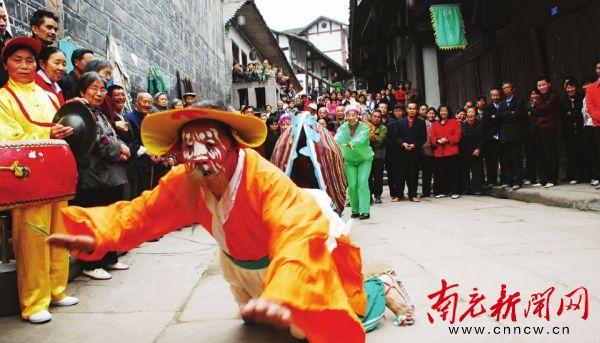 下河街的民俗演出吸引众多游客目光。
