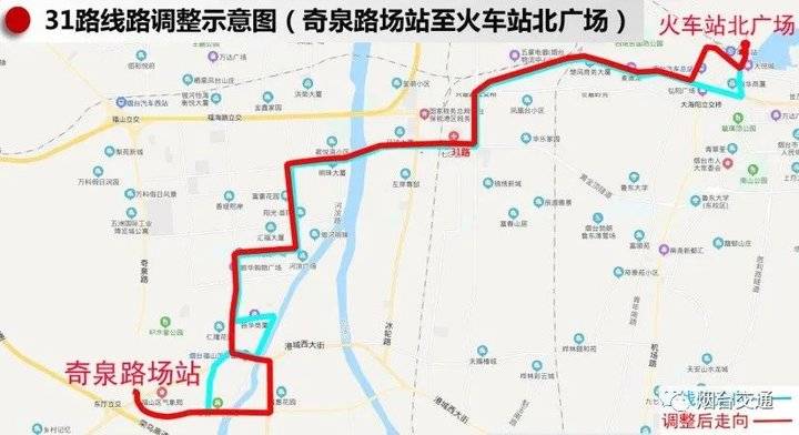 理由概述:统筹公交运力资源,结合31路优化调整,降低30路、31路与303路主干线路在福山区、芝罘区重复系数,提高通行效率,撤销路段有31路、31路高疃区间、318路补充。