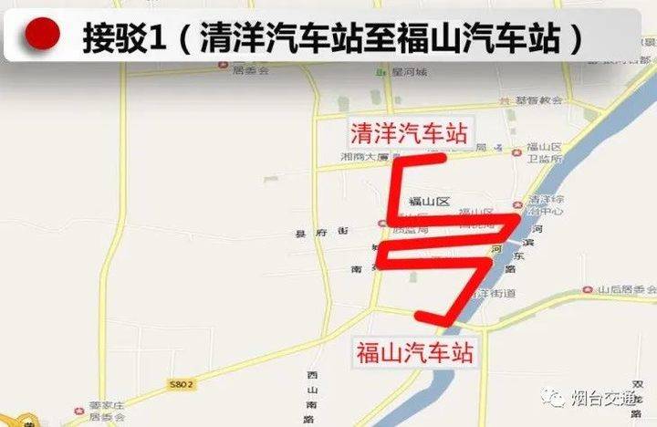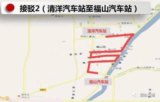 福山区奇泉路场站、福山公路管理局、福山检察院技术中心、王懿荣纪念馆南门、福山宾馆、福山宾馆北门、前埠、水清木华?芝阳城、福山医院、御花园、丽景佳园、福山和平家电、第一夫人国际婚纱摄影、日日顺电器、清洋街道办事处、福山德胜商城、福山崇文中学、三联小区、松霞小区、银河名都、东方魅力婚纱婚礼会所、烟台市实验中学、铂悦府、天业盛世景苑、玉森明珠、夹河桥东站、宫家岛小区、金鹏针业集团、九七〇医院、只楚军休所(齐丰化工)、只楚、发电厂(新安男科医院)、越秀?星汇凤凰、烟台客运公司、富仕通五金机电市场(珠玑)、阳光富景花园、烟台天虹技工学校、烟台康爱眼科医院(博霖装饰公司)、西炮台?白石肛肠医院、御金台、烟台汽车总站(三联家电)、北马路汽车站、火车站北广场。