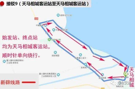 天马相城客运站、海晟花苑(中南熙悦)、开发区三十里堡、烟台智通人力资源(盛唐装饰)、富士康西门(越秀星汇金沙)、烟台出口加工区、中建悦海和园、中建悦海和园北门、招商·马尔贝拉(白银河)、金沙滩公园·泽区、黄金河、绍兴路、天马相城客运站。