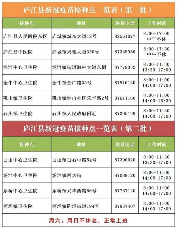 鸠江区新冠疫苗接种点一览表