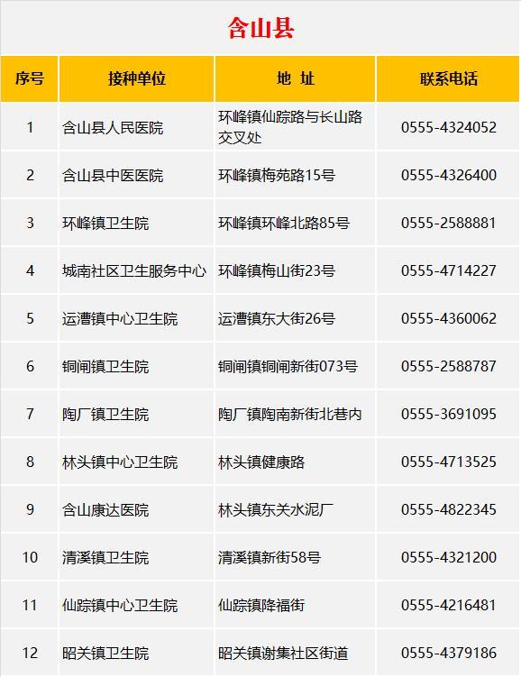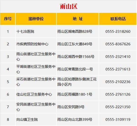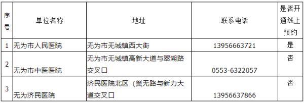 芜湖市新冠疫苗接种单位和电话公布