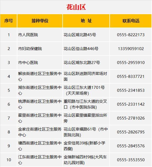 三山经济开发区新冠疫苗接种点一览表