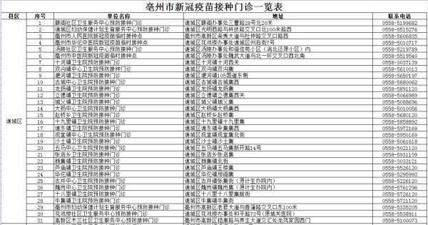 亳州市119家接种单位