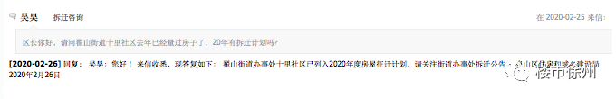 官方回复:翟山街道十里社区已经列入2020年度房屋拆迁计划