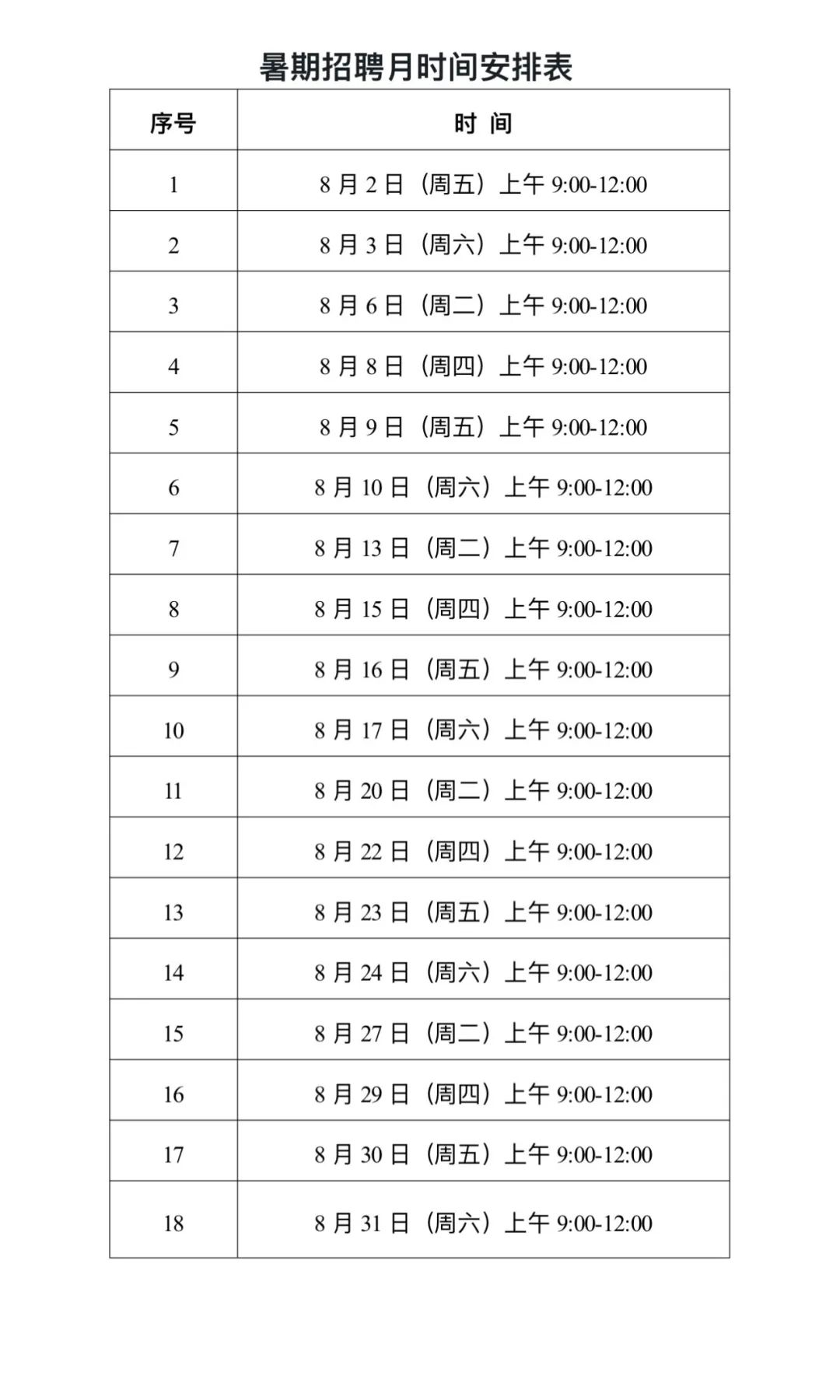 本周招聘会预告