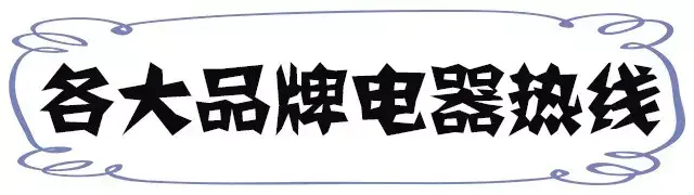家电客服热线格力400-836-5315松下400-810-0781海信400-611-1111海尔400-699-9999三菱电机400-820-5830TCL400-812-3456美的400-889-9315科龙400-809-9999夏普400-898-1818三星400-810-5858格兰仕400-830-0888长虹400-811-1666小天鹅400-822-8228西门子400-889-9999康佳400-880-0016