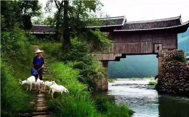 文重桥落成这天,八方乡贤来祝贺,此乃人生一大快事。看着歇山重檐小青瓦顶,悬臂挑梁木结构,一头延伸到田地,一头连接着三条千年古道,桥下溪水宽阔宁静,深潭宛如碧玉下凡,一派世外桃源般的景致。透过文重桥栏杆观望,映入眼帘的碧水、山峦、稻田、耕牛、农夫、桃花、柳枝、江枫……在时空凝固的廊桥内外,步步即景,游人徜徉在山水画中。林晴霁在众人提议下快然写下五言排律: 板桥跨玉水,石磴过岩腰。 路绕枫林外,时听叶萧萧。 溪流潺潺响,互答似笙箫。 闻声终日坐,顿觉静无聊。 ……