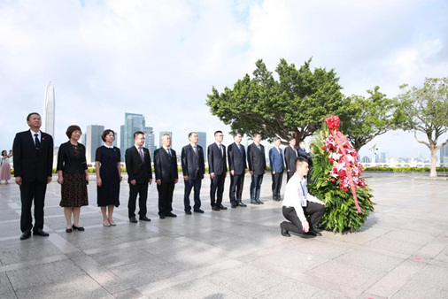 6月30日上午7点,福保街道党工委书记余杰率党工委全体成员前往莲花山,瞻仰邓小平铜像,敬献鲜花,重温入党誓词。