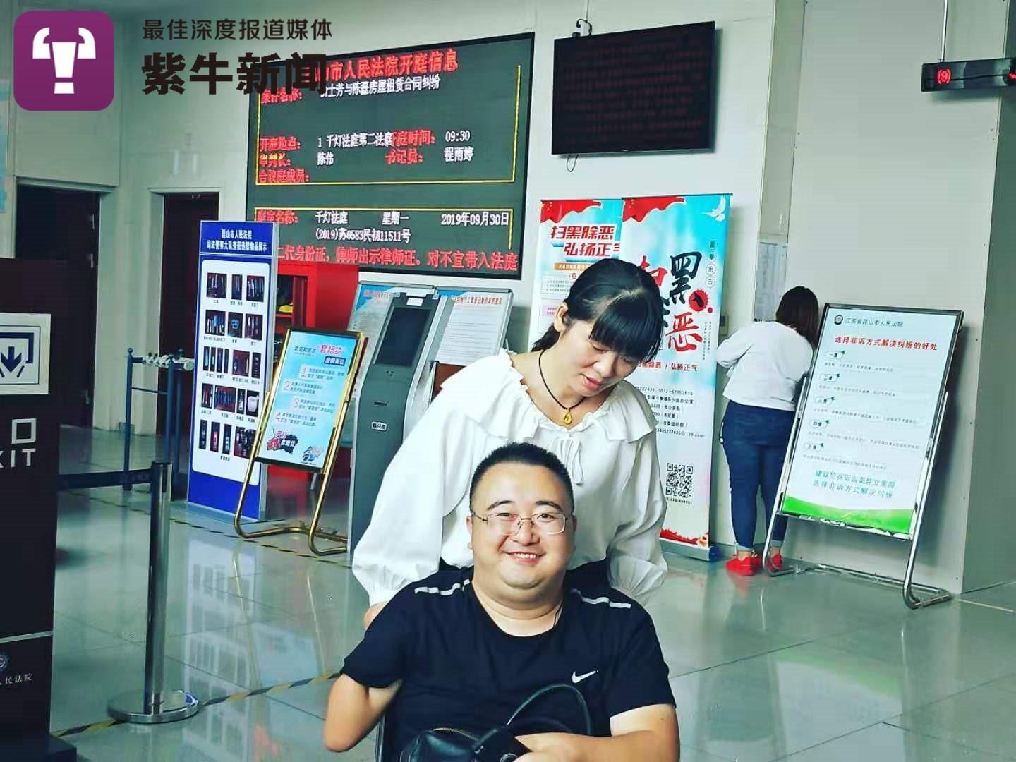 妻子李芳艳推着作为律师的李成松到法院开庭