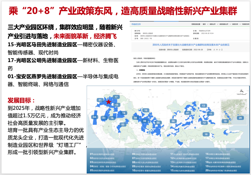 光明区马田先进制造业园区—精密仪器设备、智能传感器、现代时尚。
