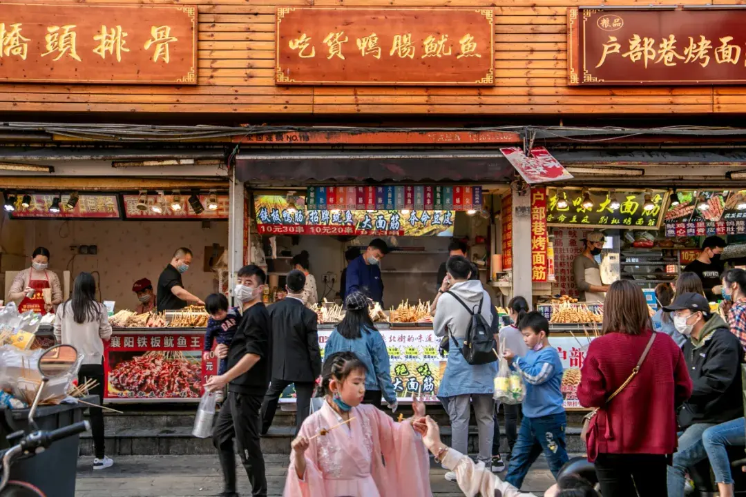 烤鸭、炸鸡、小笼汤包、酱香饼、红糖饼、油炸串串、老北京爆肚、锅盔...... 只要你的胃口够好,你可以从街头吃到结尾不带重样的。