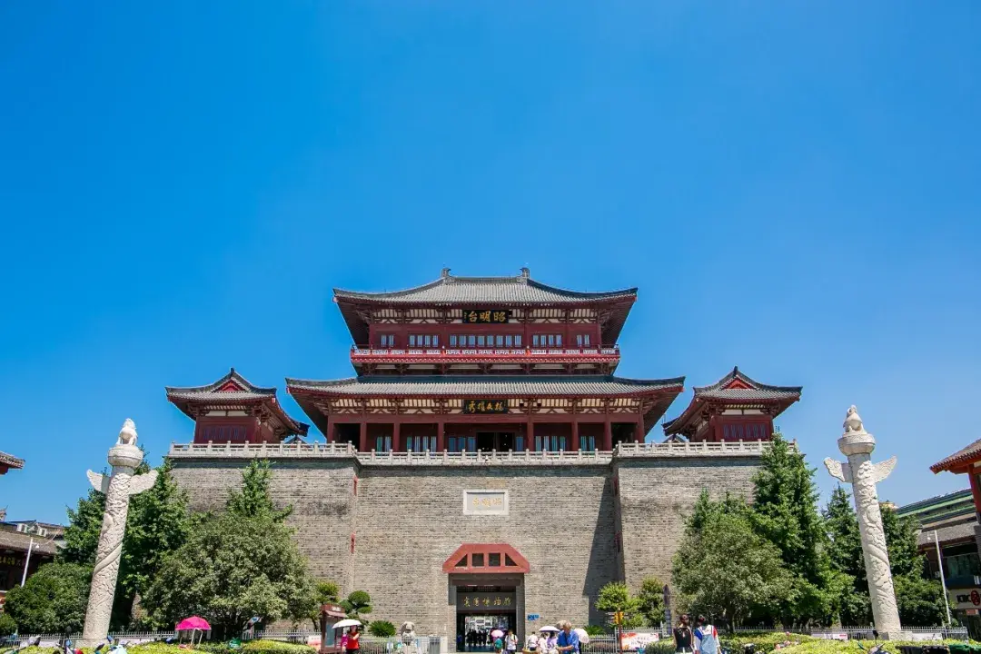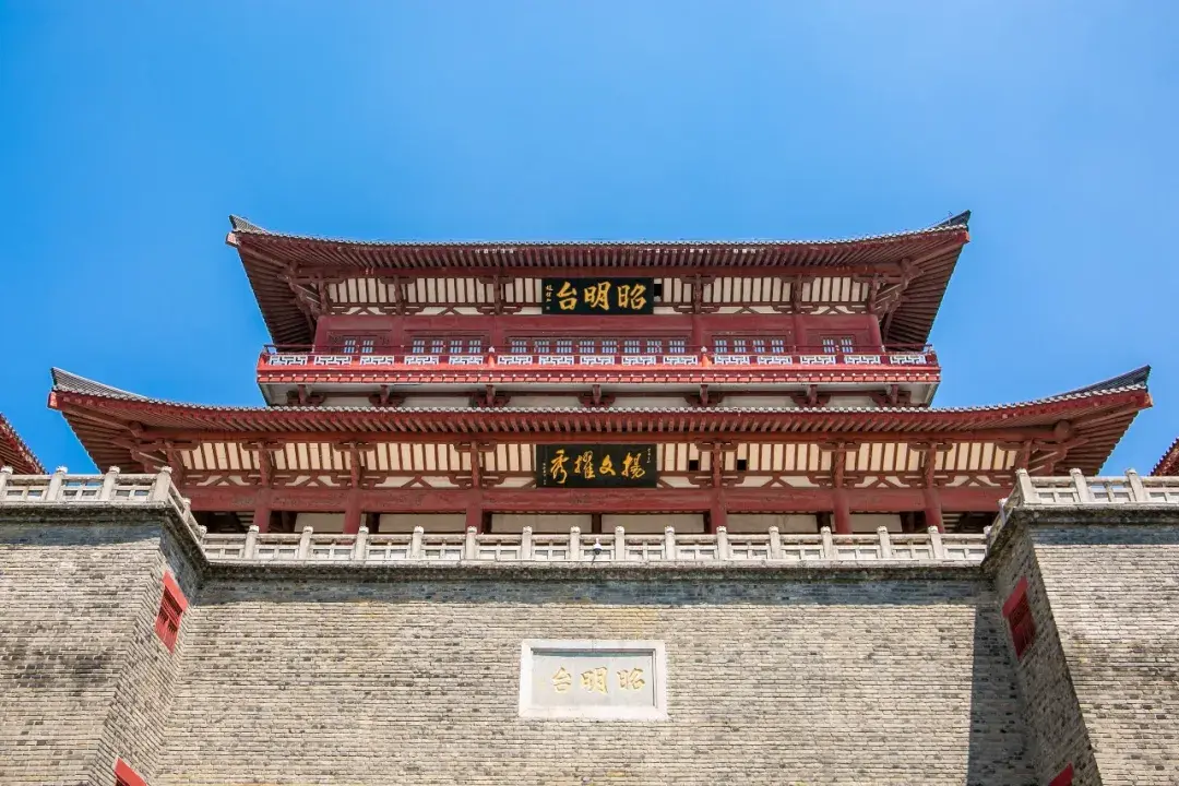 重建的钟鼓楼,也就是我们所说的昭明台 ,是用现代建筑材料建造的,台基上按魏晋风格建3层楼阁,整个建筑高达34米。