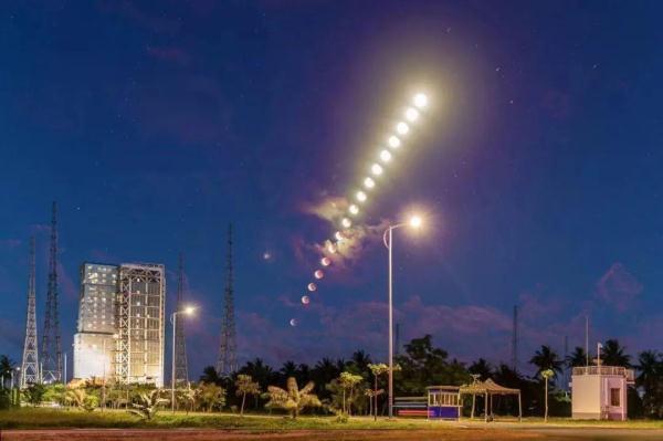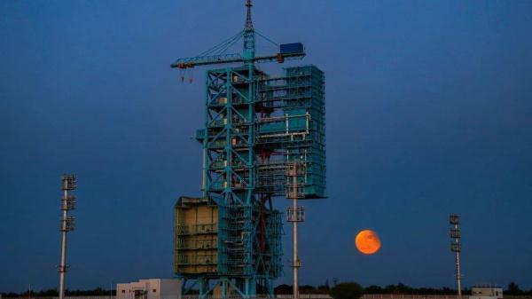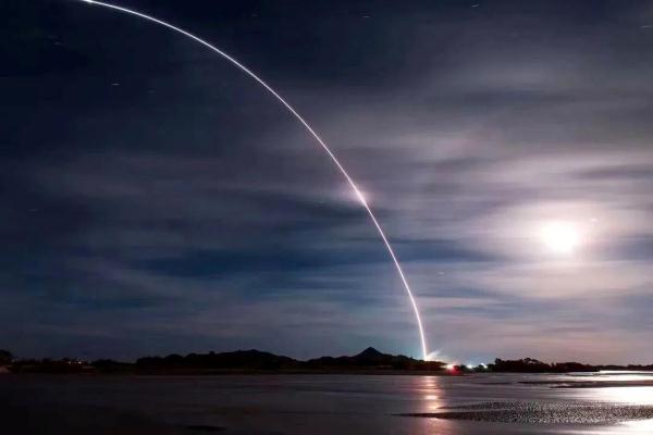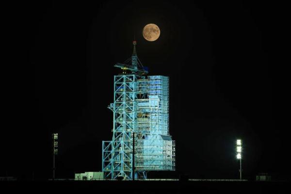 在酒泉卫星发射中心拍摄的 神舟十三号载人飞船发射时与明月同框 戴建峰 摄