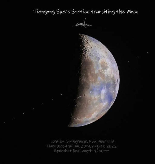 2022年8月20日 在澳大利亚新南威尔士州斯普林兰奇 拍摄到中国空间站凌月 胡韵希 摄