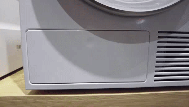 由于是热泵式干衣机,因此热风循环中,必然会带着大量毛絮。为了保证毛絮不在换热器上堆积,所以热泵式干衣机都有毛絮过滤系统。