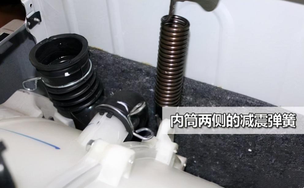 而对于其它品牌的洗衣机来说,一般内筒与外壳之间是通过 2条平衡杆 或者如上图这样的减震弹簧 固定的 ▲