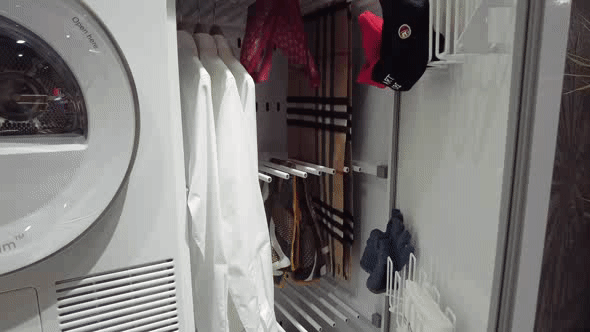 干衣柜 同样给了楼主惊喜,就这样一台造型修长的干衣柜,竟然内置了热泵 ——也就是说,它并不是依靠简单的空气对流来吹干衣物的,而是凭借着压缩机做功 ,通过抽湿的方式,再辅以风机 来实现烘干效果的。