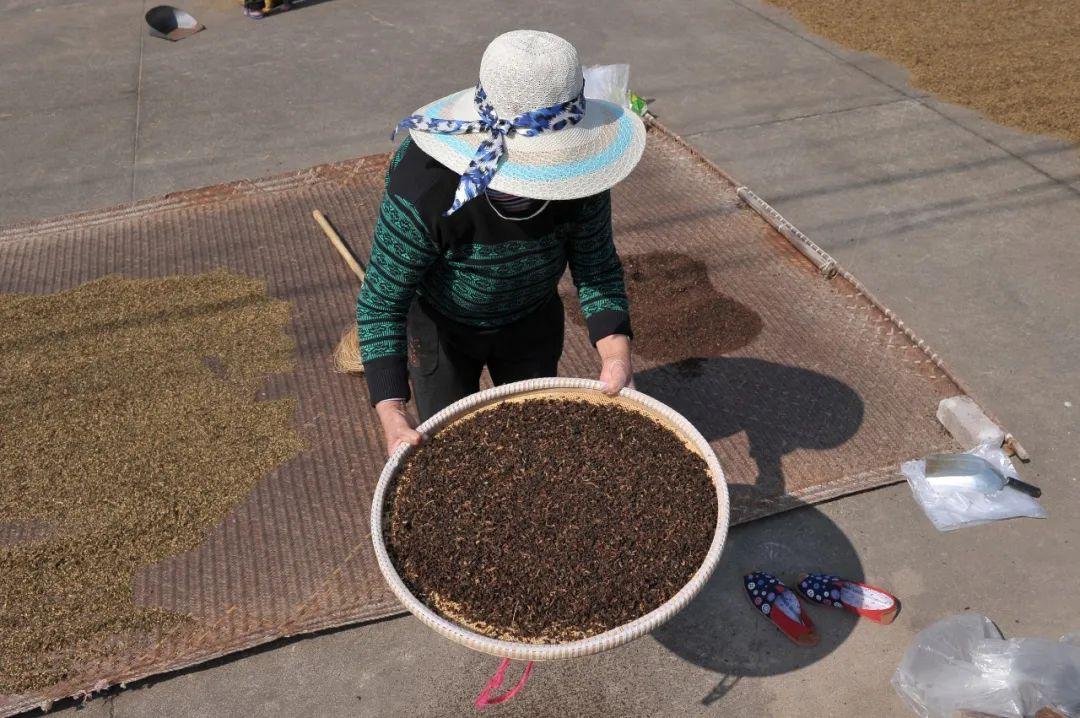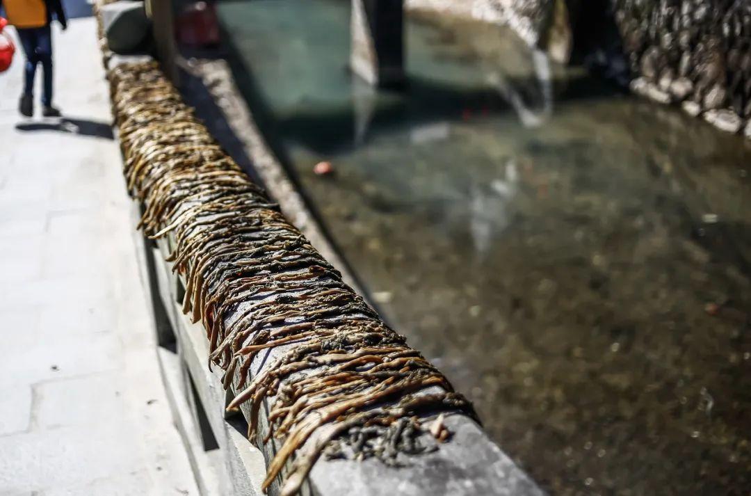 如果再把腌完的咸菜,取出来放到簸箕里,自然风吹晾晒成干,就成了梅干菜。雪里蕻分春秋两季,而三月正是晒制梅干菜的最好时机,江南多雨,为了保留住晴天,家家户户会趁着风和日丽,拿着簸箕出来晒梅干菜,就像是赶着每年一度的盛会,颇有种水乡生活的仪式感。