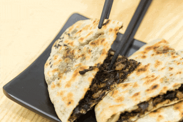 烤好的酥饼趁热咬开,猪肥膘呈现半融化状态,粒粒晶莹,入口还有加入大量白糖带来的浓郁甜味;梅干菜则被浸润得乌黑发亮,特有的干菜香扑面而来,伴随着酥皮的烟火气,一并冲击着口腔和鼻腔。只不过江南人嗜甜,外地人吃多了酥饼,恐怕就腻得没胃口吃饭了。