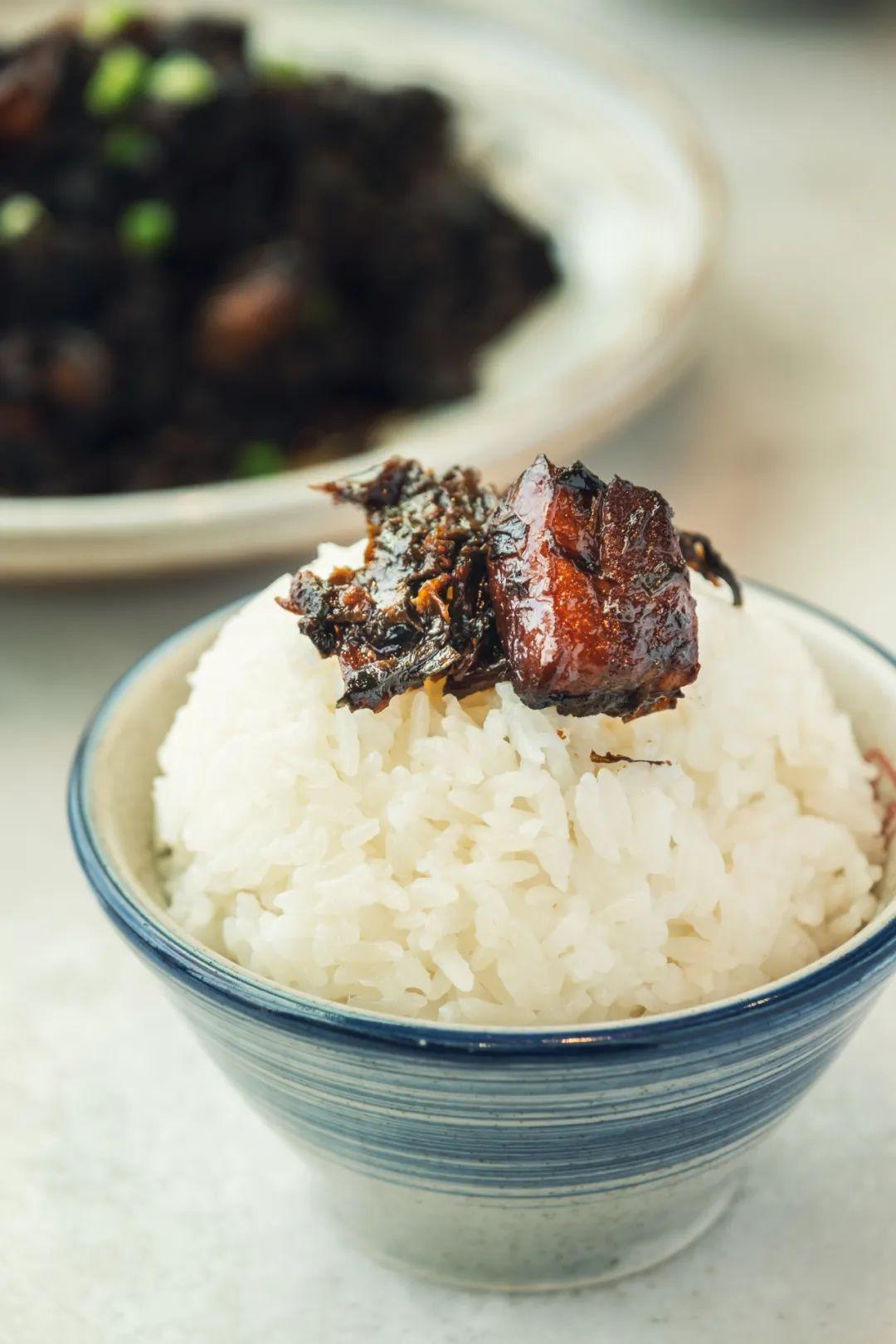 梅干菜与白米饭的“黑白配”。摄影/学文映像