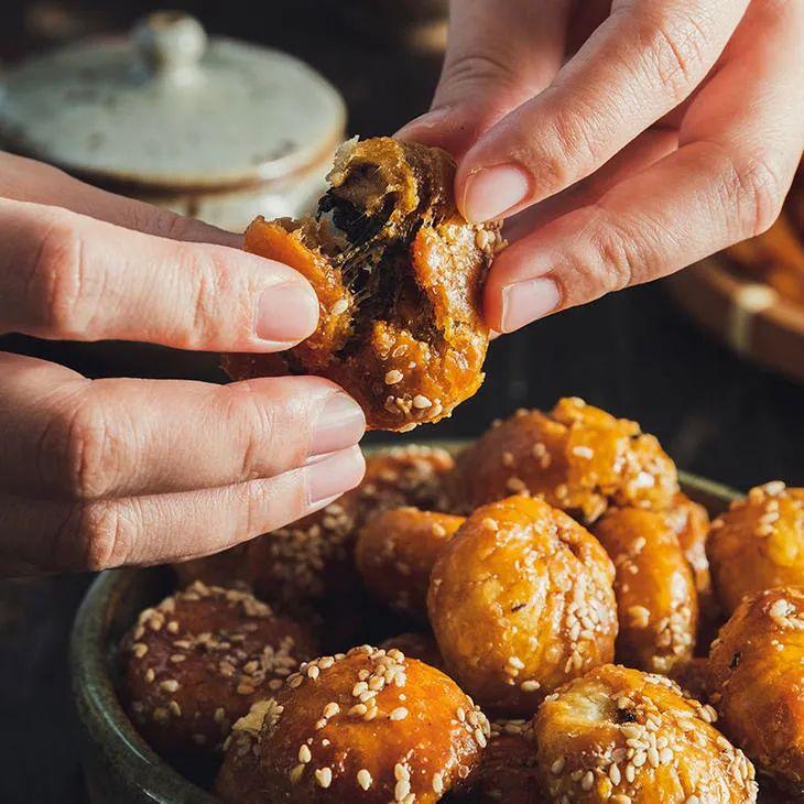 丽水的缙云烧饼,和金华酥饼有着异曲同工之妙,同样是把梅干菜的“鲜甜”发挥到了极致。酥饼是半圆形的,而缙云的梅干菜烧饼却薄一些,里面同样装着剁细的梅干菜和晶莹的肥膘肉,擀成面饼的形状,再刷上一层糖油,洒上黑芝麻,算是缙云烧饼的标准配置。