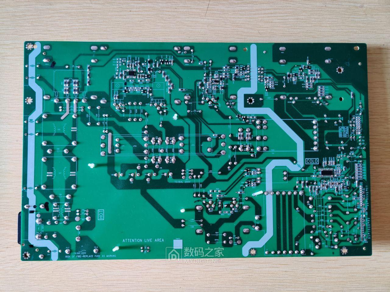 板型比较宽大,元件布局从容,发热元件都有散热片,EMI部分没有做精简。