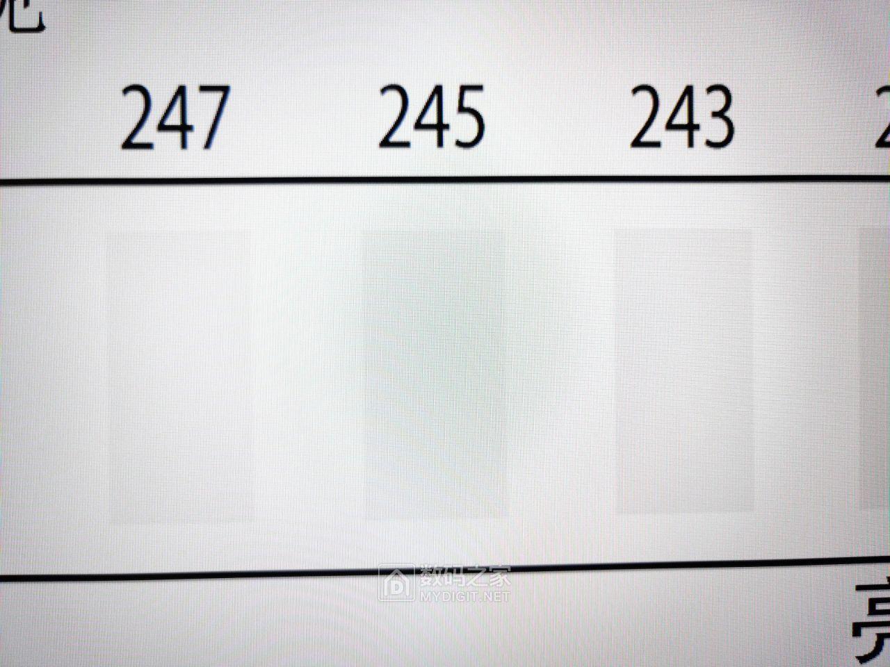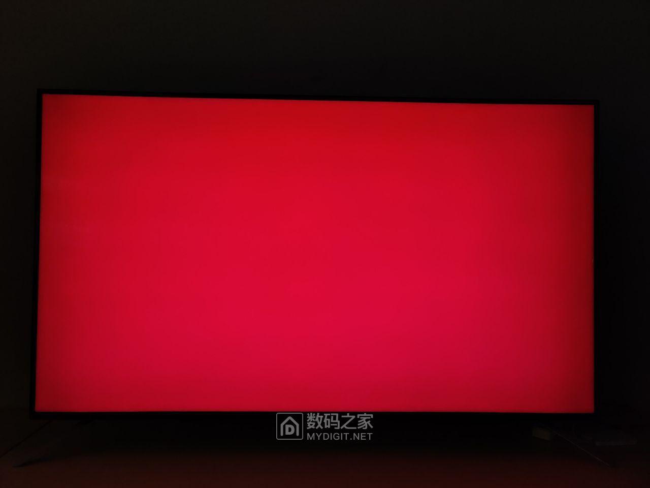 纯白画面,亮度非常均匀,四角稍微发暗,直下式背光基本不能避免四角发暗,就算使用分区背光也是如此。