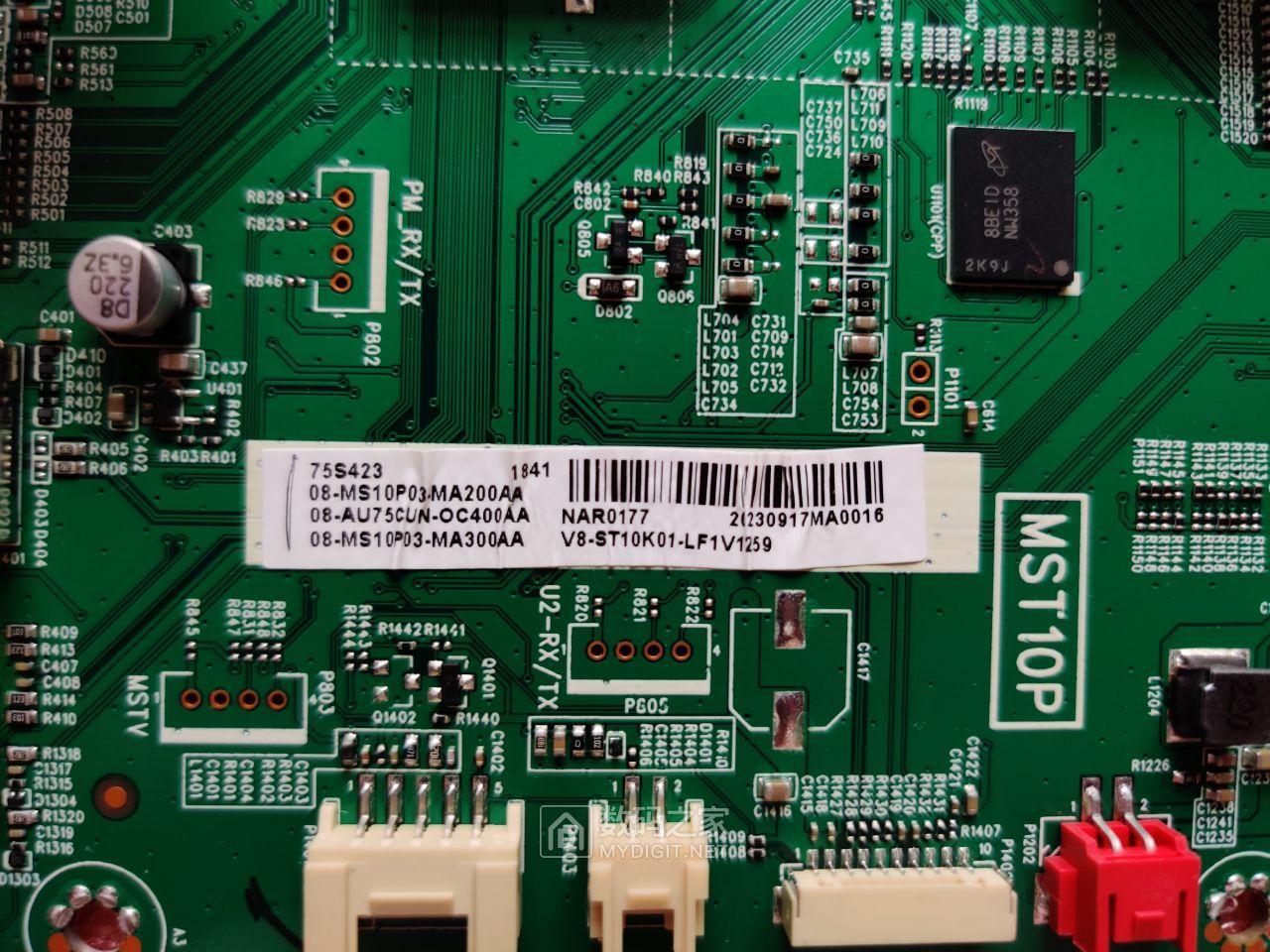 这款机型应该是用了MSTAR晨星半导体的cpu,但是用“MST10P”找不到具体的CPU型号。主板上的CPU用导热硅酮胶和散热片粘在一起了,不容易拆开。晨星半导体是市场占有率最大的电视机CPU生产厂家。