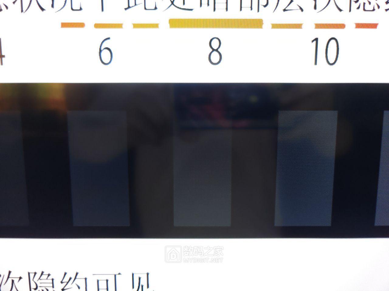 蓝色,三原色表现都不错,我们再通过色彩渐变图片考察它的色彩控制能力。