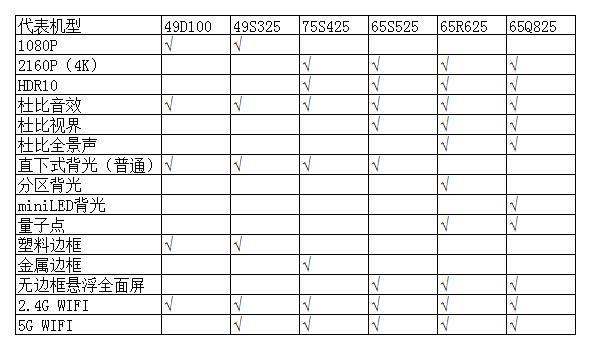与安卓系统的免费授权,自主研发不一样的是,TCL的ROKU系统电视机都是基于深度定制。所以我们可以看见TCL从来不用的分区背光在ROKU系统6系中出现,当然,TCL从来不做OLED这个惯例还是没有打破。TCL美国ROKU电视机分别有1、3、4、5、6、8,六个系列,每个系列都有各自尺寸机型,还会随时间迭代,下面列出表格简单区分。