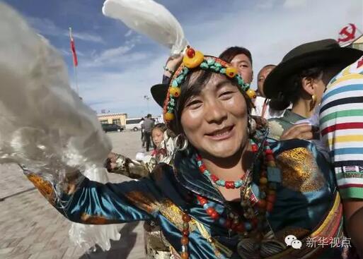 村民们身着盛装,献上洁白的哈达、切玛、青稞酒,表达对总书记最隆重最热烈的欢迎。