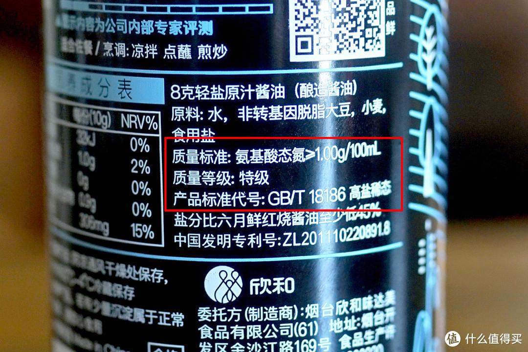 推荐理由: 配料表足够干净,只有水、非转基因脱脂大豆、小麦、食用盐。和上面那个禾然比,原料只是非有机的区别。氨基酸态氮含量≥1.15g/100ml,实打实的特级原酿酱油。钠含量570mg/10ml,高盐稀态。