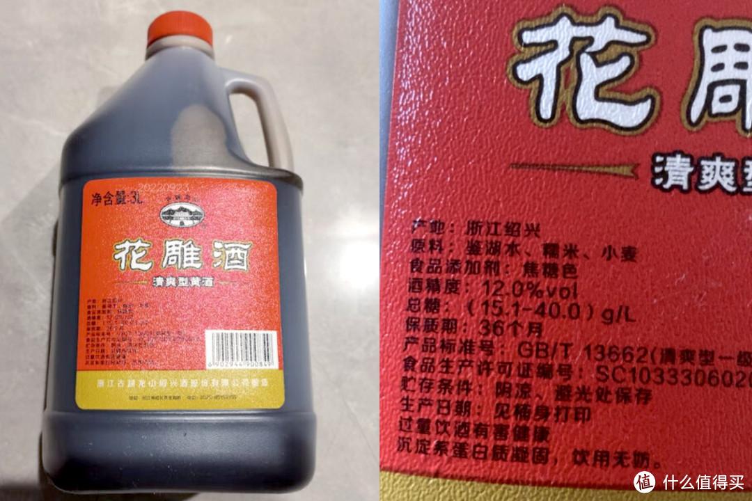 花雕酒本身就属于黄酒的一种,酒性柔和,可当料酒用,尤其清蒸鱼时使用,去腥效果一绝。这款保质期三年,可直接饮用,也可用于烹调。酒精度≥12.0%vol,时间越久越香,有好价可按箱囤。
