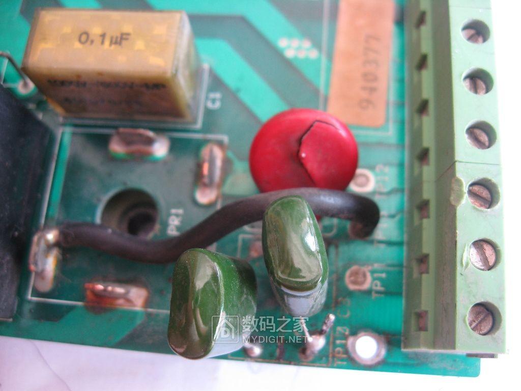 电压过高就是烧的这个地方,压敏电阻烧了,电容是厂里电工后换上去的。原本是两个0.033UF瑞法电容。