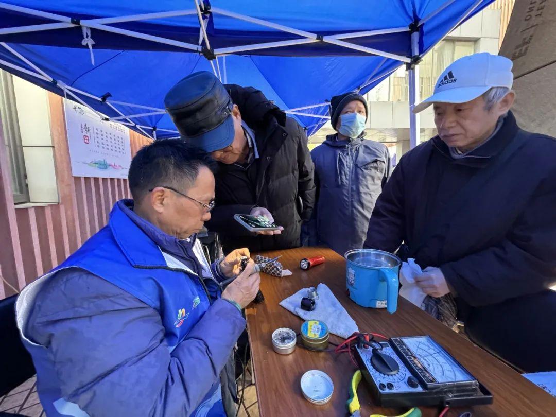 今天,石泉路街道在新时代文明实践分中心为市民提供了不少便民服务。但是要说最热闹的点位还是冯飞的小家电维修摊位。排队的市民当中既有专程而来维修小家电的“老朋友”、也有慕名而来的“新面孔”。