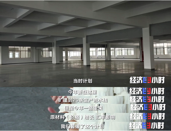 熊栩佳他们企业生产的是电火锅、早餐机这样的厨房小家电。这是他们今年新建成的装配厂房,总面积达9400平方米。可建成4个月来,并未按计划投产,这里一直空空荡荡。