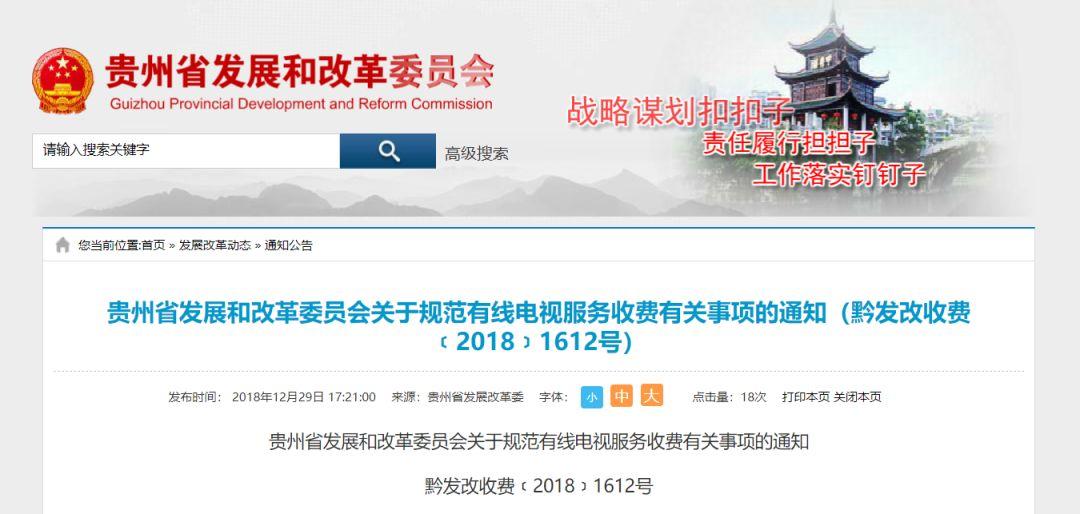 (二)本通知自2019年1月1日起执行。原有规定与本通知不一致的,按本通知执行。原《贵州省物价局贵州省广播电视局关于明确全省有线电视相关服务收费的通知》(黔价费〔2009〕137号)同时废止。