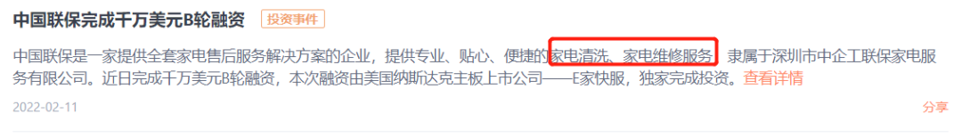 还有资本的动作,最近提供专业、贴心、便捷的家电清洗、家电维修服务中国联保已经完成了千万美元的B轮融资,足以看到资本对这个市场的信心。