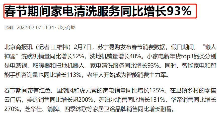 再看看今年春节期间的家电清洗服务,同样上涨了93%!