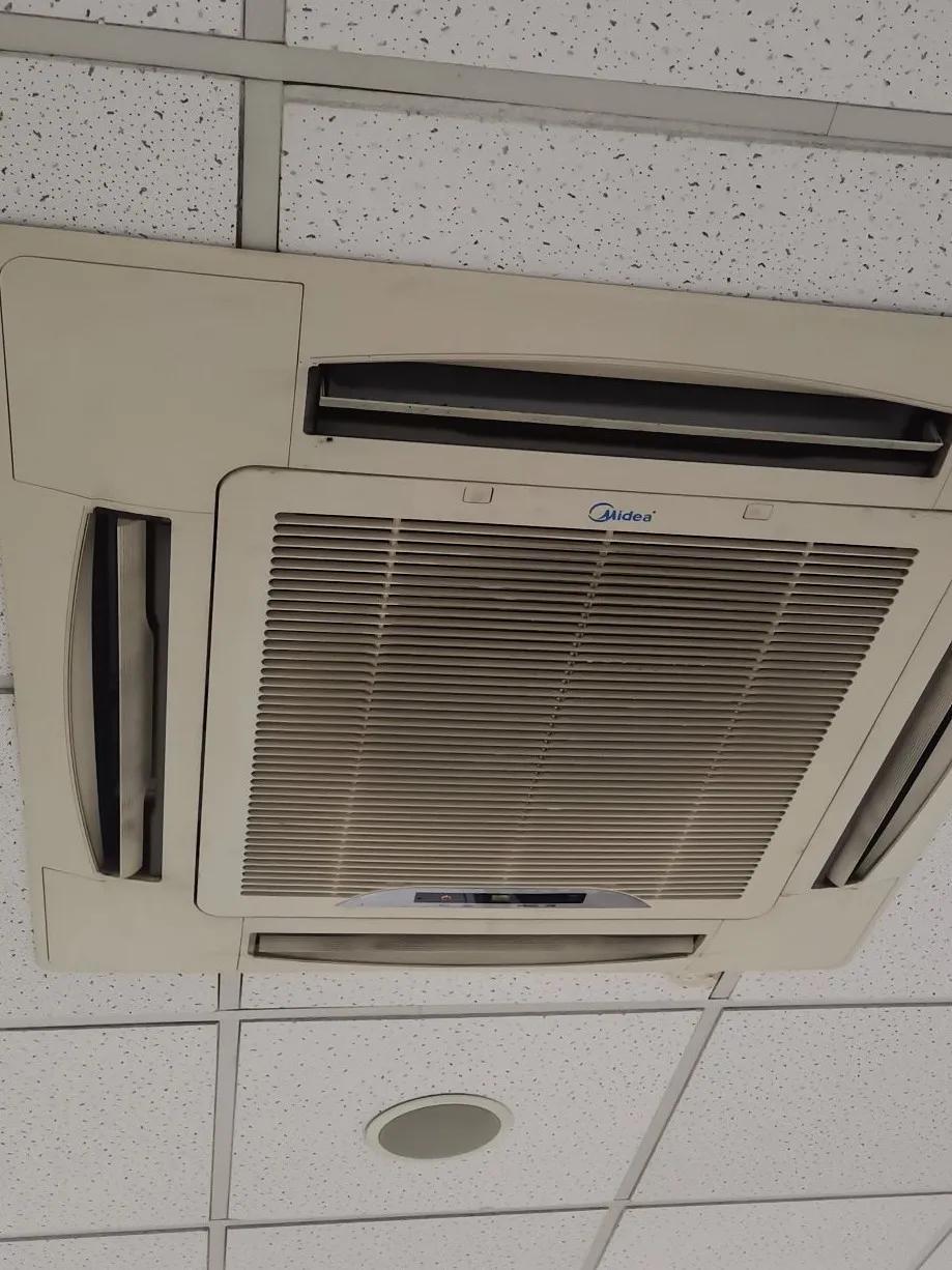 这是一台美的5匹吸顶机,先查看内机显示屏,显示屏有显示,证明内机电脑板是好的,没有跳闸说明电源是好的,压缩机没有对地,查看线控器,线控器有显示,按按键没有反应,我立刻拿出美的遥控器,按遥控器正常工作,判断线控器坏了。